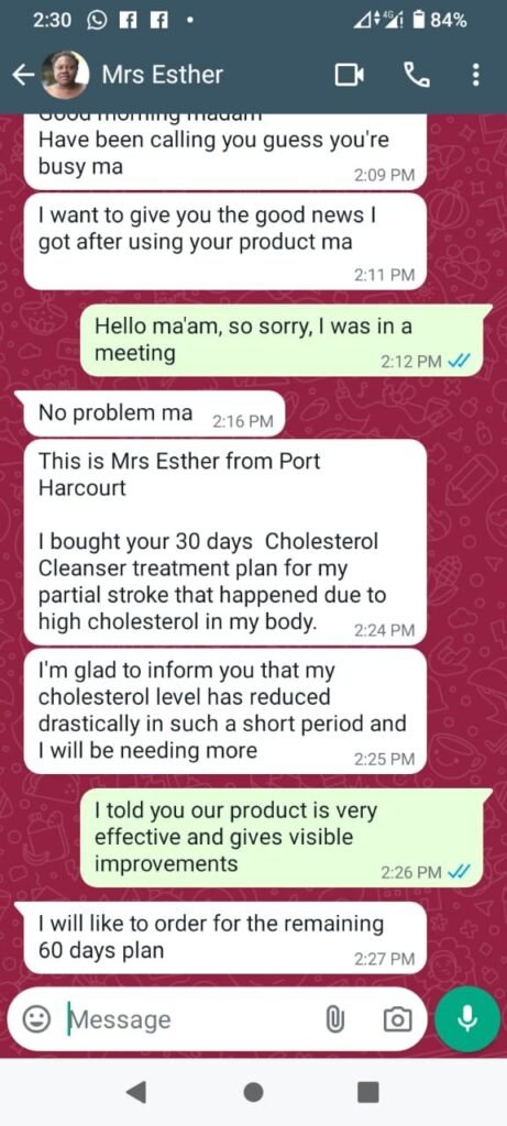 Within 30 days, she was able to reduce her cholesterol levels and become free from the associated risks of high cholesterol.